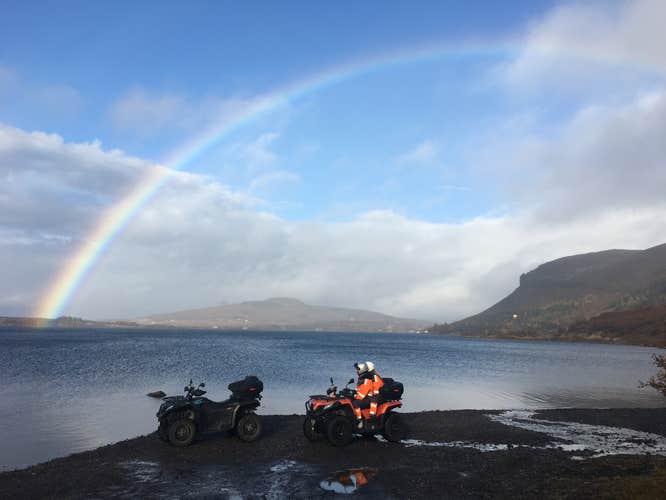 Sfrecciando sul pendio della montagna, si possono ammirare da vicino paesaggi e panorami mozzafiato. In particolare, potrete ammirare un bellissimo lago, un campo di lava millenario, fiori selvatici, alberi su dolci colline, vulcani e le montagne circostanti nel sudovest dell'Islanda.