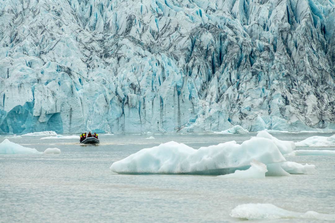 Dopo aver indossato una tuta calda e un giubbotto di salvataggio, la guida turistica ti condurrà lungo il paesaggio verde e muschioso per raggiungere la laguna, dove troverai le barche. La guida turistica prenderà il timone e ti condurrà attraverso la laguna glaciale, dove ti permetterà di godere di una visione unica sulla natura di Fjallsárlón. Le barche ti porteranno vicino ai ghiacciai, offrendoti viste spettacolari sugli iceberg blu e bianchi e sul ghiacciaio.