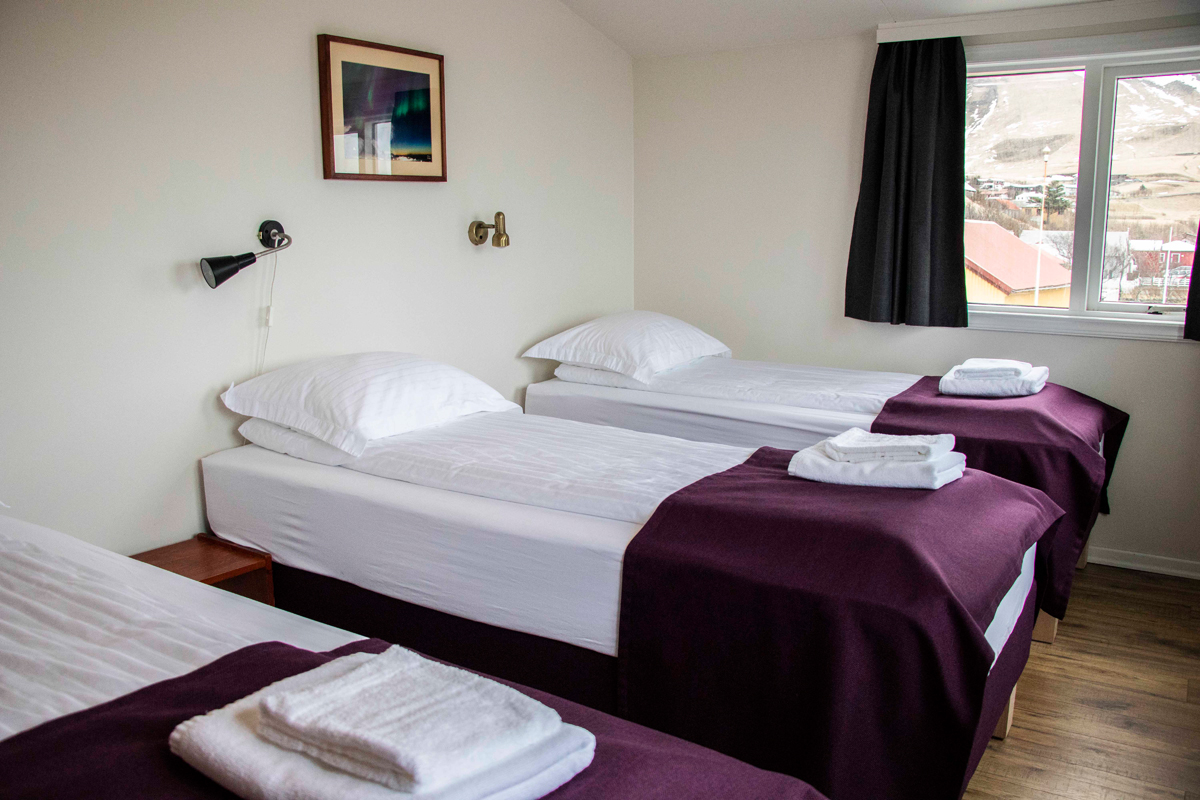 南アイスランドのVik Innでは、5種類の客室タイプをご用意。各部屋は2~3名様向けで、ダブルまたはツインルーム、テラス付きダブルまたはツインルーム、専用入口付きの快適なダブルまたはツインルーム、エコノミートリプルルーム、テラス付きトリプルルームからお選びいただけます。