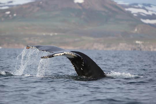 連なる山々とフィヨルドの美しい景色を堪能しながら、クジラの出現を期待しましょう。スキャゥルファンディ湾でよく観察されるザトウクジラとミンククジラの他にもシャチ、ナガスクジラとイワシクジラに出会える可能性もあります。運が良ければシロナガスクジラも姿を見せてくれるかもしれません!3時間もクルージングを快適に楽しむには防寒のつなぎ服をご用意します。撥水加工された靴でご参加いただけると最善です。