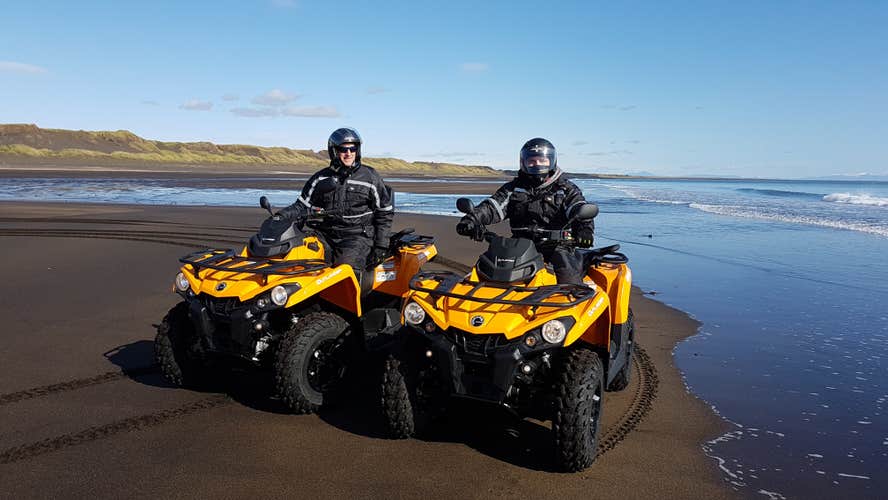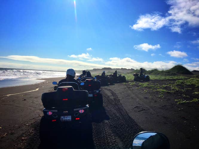이 북극 해변의 부드러운 검은 모래사장을 따라 강력한 4륜 ATV를 타는 것과 비교할 수 있는 느낌은 없습니다. 아찔한 스릴을 만끽하며 주변 자연의 경이로움을 감상하는 동시에 아찔한 스릴을 만끽하세요.