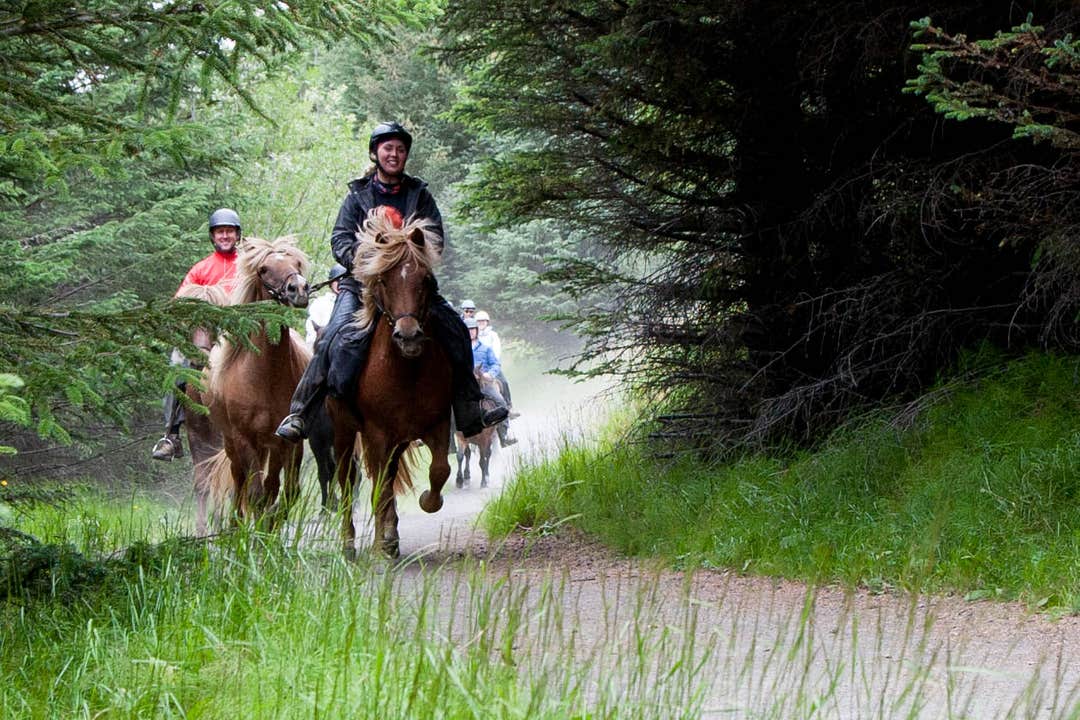 약 2시간 30분에서 3시간 동안 펼쳐지는 승마 여정은 어두운 화산암 지대와 푸른 초원이 어우러진 다양한 풍경 속을 지나갑니다. 농장 주변을 유유자적 따라가며 아이슬란드의 경이로운 자연경관을 감상하는 순간은 오랫동안 잊지 못할 특별한 경험일 거예요.