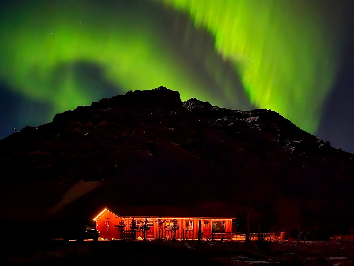 Northern Lights Farmhouse & Private Jacuzzi is een door een familie gerund vakantiehuis aan de zuidkust, gelegen tussen de watervallen Skogafoss en Seljalandsfoss. Perfect voor maximaal zes gasten, het combineert de charme van een werkende boerderij met het comfort van een volledig uitgerust huis. Schapen en paarden grazen rondom, en wanneer de avond valt, kunt u ontspannen in uw eigen jacuzzi terwijl het noorderlicht boven u danst.