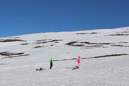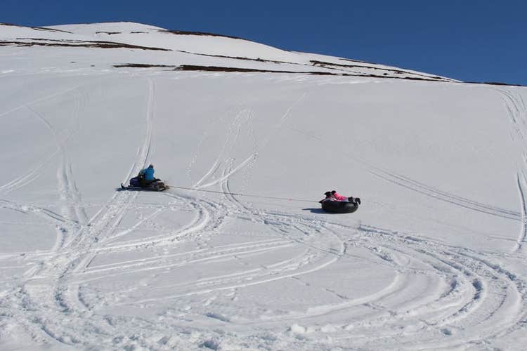 Je gids trekt je met de sneeuwscooter omhoog naar de top van een heuvel, waarna je met volle vaart naar beneden kunt glijden. Dit is een vrolijke, adrenalineverhogende activiteit die jong en oud zal bijblijven.