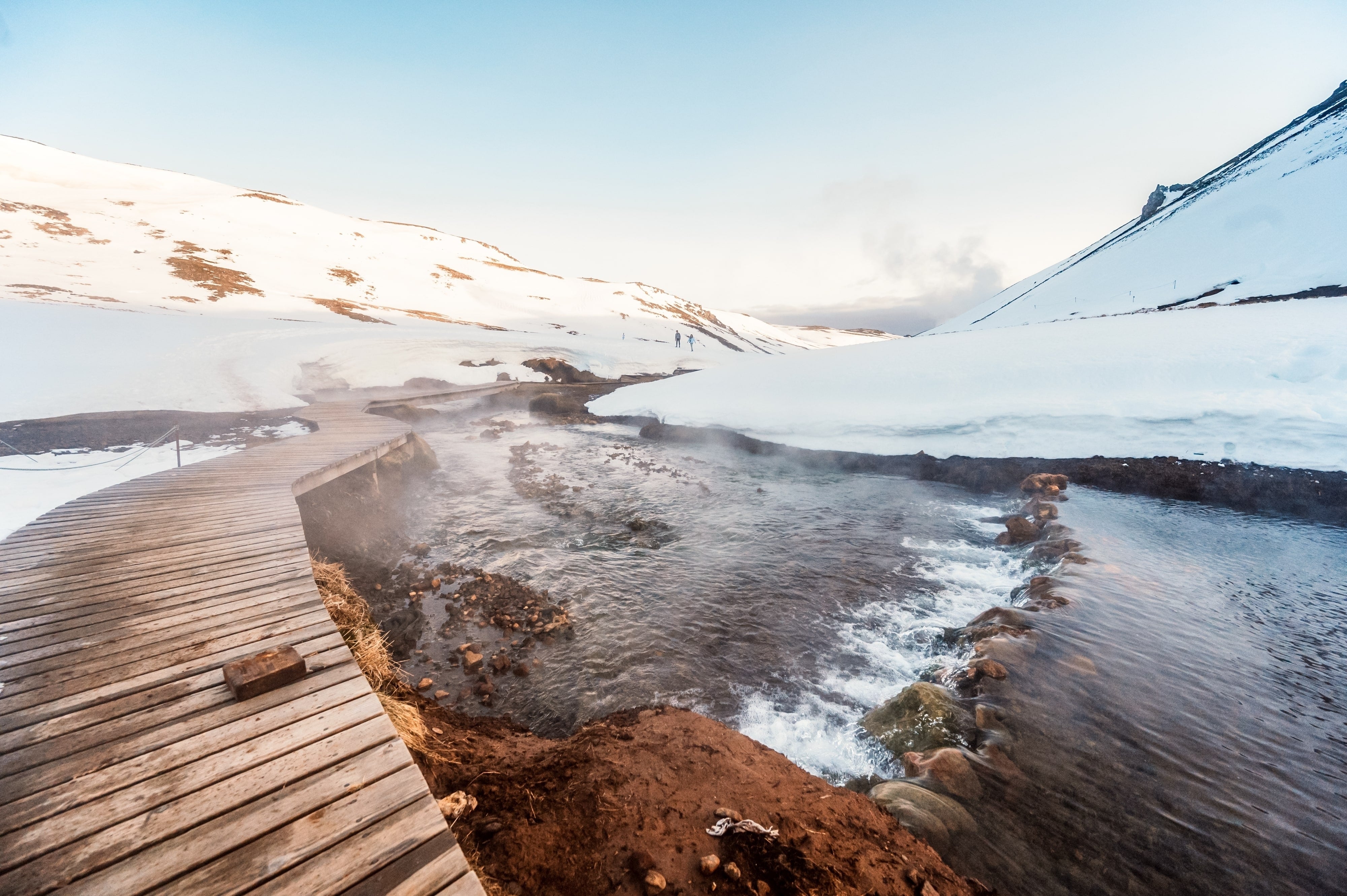Deretter leder du hesten din mot det geotermiske området i Gufudalur-dalen. Den fargerike dalen ligger rett ovenfor Hveragerdi, og er kjent for å ha mange dampende varme kilder, som du kan se og sette pris på mens du rir på islandshesten din. I tillegg til de varme kildene får du en fantastisk utsikt over grønne åkre og den imponerende vulkanen Hengill.