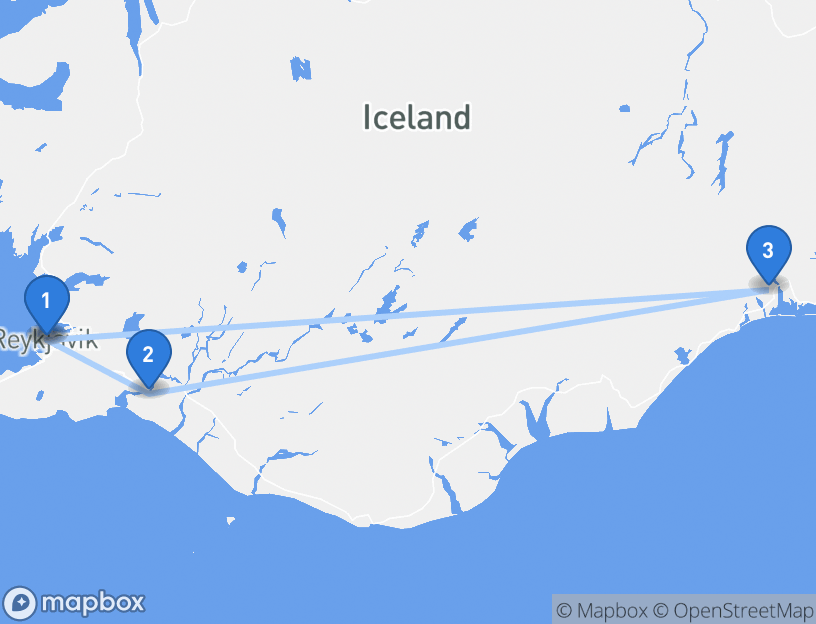 Eventyret starter idet du lander på Keflavik internasjonale lufthavn. Her henter du leiebilen og kjører til Reykjavik, hvor du kan slappe av etter flyreisen eller kaste deg rett ut i utforskingen. Et besøk i det berømte geotermiske spaet Den Blå Lagune er en perfekt start på reisen.