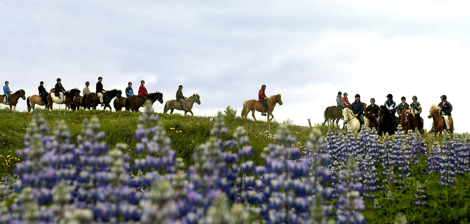 Uansett hvilken erfaring du har med hesteridning, vil de vennlige guidene dine finne en hest som passer perfekt for deg. Etter en kort briefing, der du får utdelt alt nødvendig utstyr, hopper du opp i salen og begir deg ut i landskapet. Uansett årstid og vær er ridning på Island en magisk opplevelse, der du kan nyte den rå naturen med fjell som ruver på hver side. Her kan du føle deg som en viking fra gamle dager. Tempoet er rolig, men hvis du er mer erfaren og har lyst på litt spenning, kan du prøve islandshestens unike gangart - tölten - og galoppere gjennom landskapet.