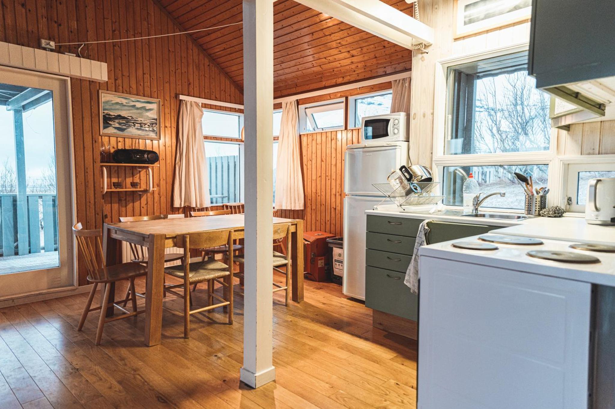 På Old Cottages har du alt du trenger for et komfortabelt opphold. Du kan lage dine egne måltider på det felles kjøkkenet, og gjerne bruke ferske, lokale råvarer for å få smaken av Island. De hyggelige oppholdsrommene er perfekte å slappe av i etter en dag ute på tur.
