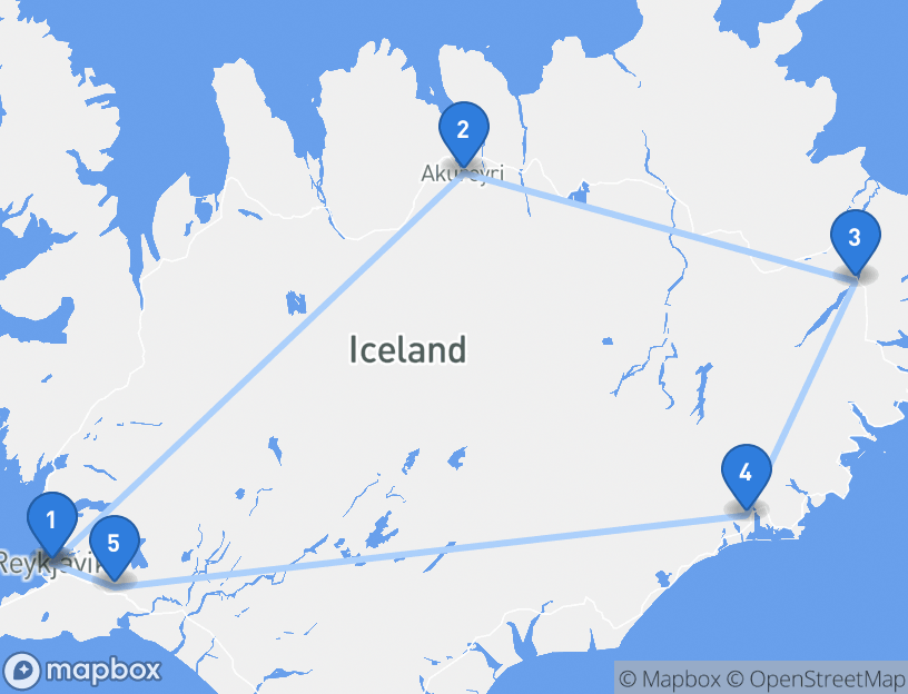 Droga z Reykjaviku do Akureyri zazwyczaj zajmuje około 5 godzin. Jednak wszystko będzie zależało od tego jak wiele przystanków zrobisz, aby oglądać nie tylko wyjątkowe atrakcje, ale również zniewalający, islandzki krajobraz. Jeżeli masz ochotę, przed dotarciem do stolicy północnej Islandii możesz wybrać się do tunelu w lodowcu Langjokull stworzonego przez człowieka lub na eksplorowanie jaskini lawowej Víðgelmir, która uformowała się podczas erupcji ponad tysiąc lat temu.