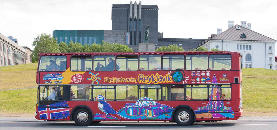 Wskocz na pokład czerwonego autobusu City Sightseeing i odkryj urokliwe zakątki Reykjavíku we własnym tempie!