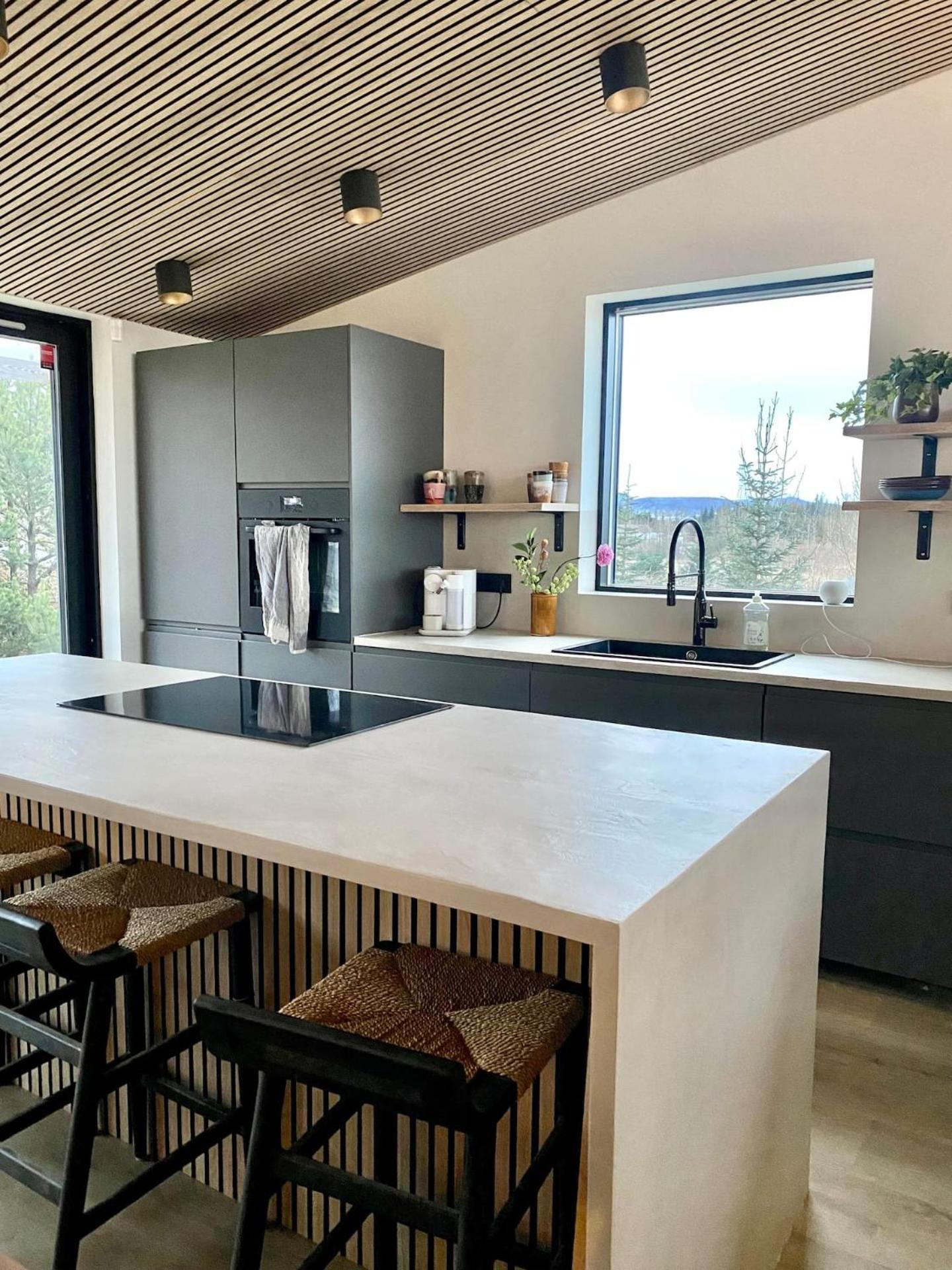 The Oak House został zaprojektowany z myślą o komforcie i elegancji – nowoczesne wnętrza harmonijnie łączą się tutaj z otaczającą przyrodą. Goście mają do dyspozycji w pełni wyposażoną kuchnię, w której można przygotować posiłki z lokalnych składników. Geotermalne ogrzewanie zapewnia ciepłą atmosferę przez cały czas pobytu, a przestronne salony to doskonałe miejsce na relaks. Na zewnątrz czeka taras, idealny do wypoczynku pod islandzkim niebem i kontemplacji niezwykłych widoków.