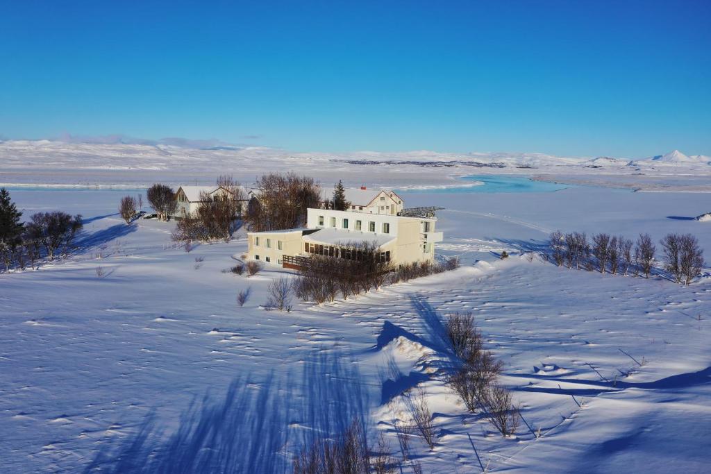 Pensjonat położony jest w spokojnej części zachodniej Islandii, w otoczeniu pięknych widoków, oferując wiele atrakcji takich jak jazda na rowerze, jazda konna, piesze wycieczki i wędkarstwo. Wodospad Glanni, który według legendy jest domem dla elfów i trolli, znajduje się 40 kilometrów na północ od pensjonatu.