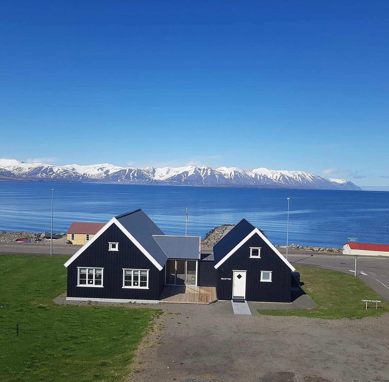 Pensjonat Grenivik położony jest w spokojnej wiosce rybackiej Grenivik, 38,3 km od Akureyri. Położony po wschodniej stronie fiordu Eyjafjordur i u podnóża góry Kaldbakur, widoki z obiektu są wyjątkowe.