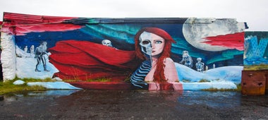 Experience the artistic Murals of Hellissandur, a remote coastal village on the Snaefellsnes Peninsula in West Iceland that has transformed into a striking outdoor gallery. With more than 40 large-scale artworks painted across homes and public spaces, Hellissandur proudly holds the title of Iceland
