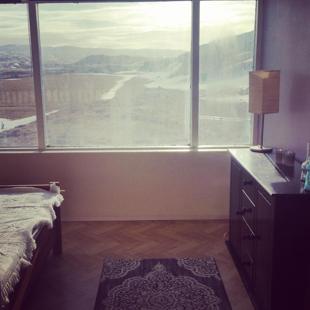 Из квартиры открывается потрясающий вид на горы, образующие естественную фоторамку, и вид на северное сияние, когда в помещении тепло.