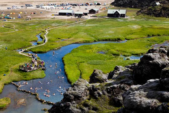 После того как вы полюбуетесь вулканом Гекла, вы направитесь в Ландманналаугар. По пути вы будете пересекать потоки рек и пересеченные участки местности. К счастью, ваш супер-джип идеально подходит для таких условий, что сделает путешествие захватывающим.
