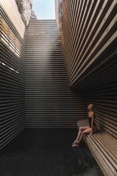 Второй этап называется «кульди» и представляет собой купание уже в другом бассейне – с ледниковой водой. Она пробуждает все органы чувств так, как ничто другое. Затем вы переходите в сауну – это третий этап, «илюр». Кстати, из сауны открываются просто изумительные виды.