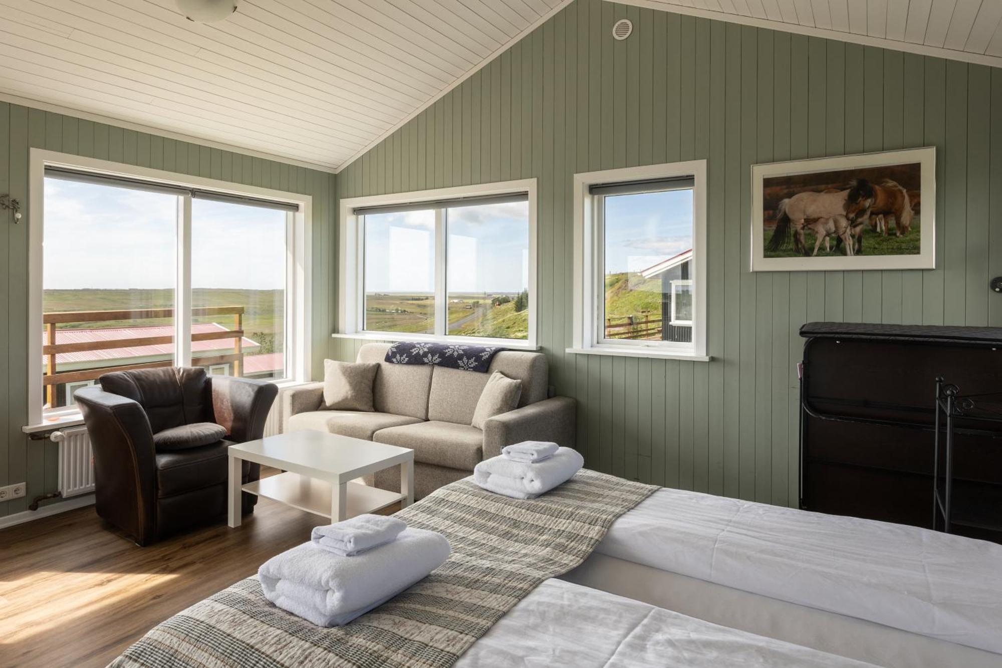 Hestheimar är en rustik fastighet som ligger på södra Island mellan Gyllene cirkeln och Vik, bara en timmes bilresa från Reykjavík. Med panoramautsikt över en stor hästranch och två av Islands mest kända vulkaner - Hekla och Eyjafjallajökull - i bakgrunden, låter Hestheimar dig komma nära och personlig med Islands natur. Det finns gott om vandringsleder i området. Det är bara en kort bilresa från två av de mest kända vattenfallen på sydkusten, Seljalandsfoss och Skógafoss, samt hamnen som leder upp till Västmannaöarna.