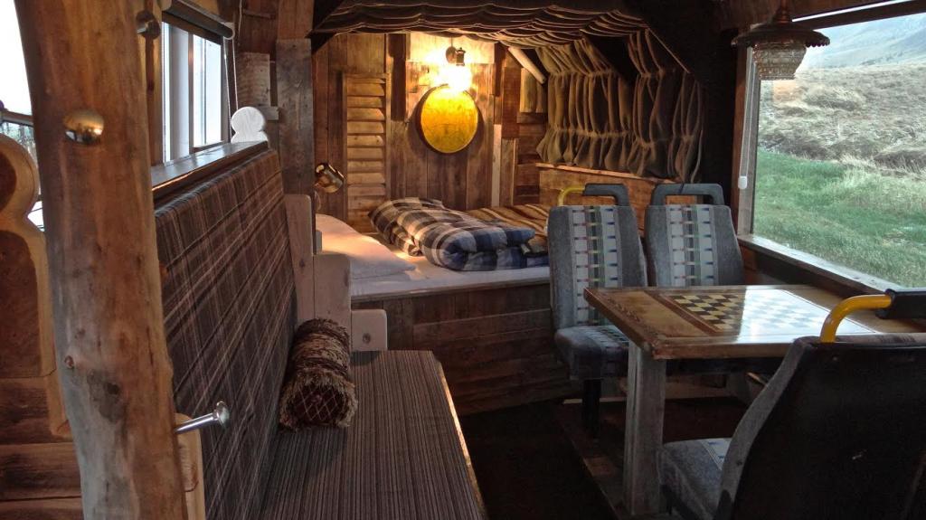 Detta gästboende vid stranden erbjuder spektakulär utsikt över havet och bergen genom de stora bussfönstren. Utanför finns det en gemensam uteservering med 360-graders utsikt över detta dramatiska landskap också.