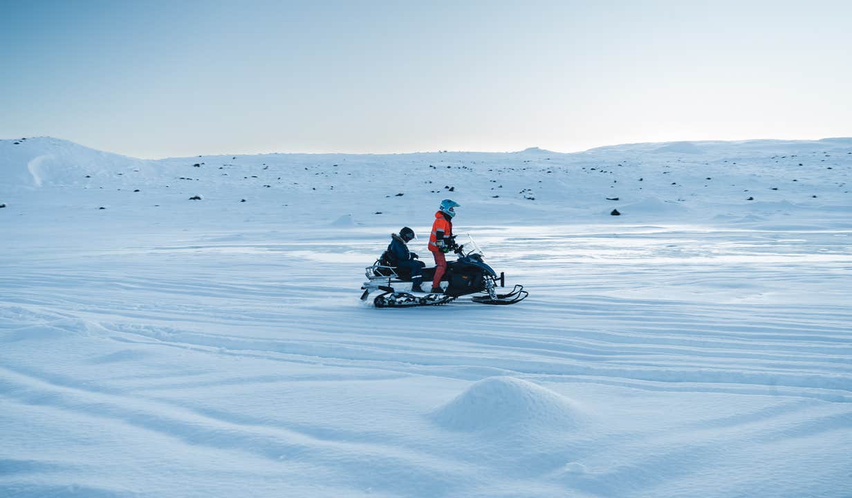 Dagen avslutas med en fartfylld snöskotertur över den snötäckta glaciären Langjökull. Du kör över glaciärens yta, omgiven av tidlösa berg och vidsträckt snölandskap, med panoramavyer som känns som att stå på toppen av världen.