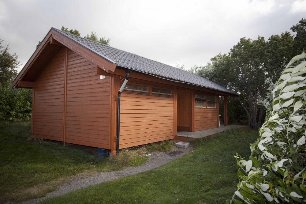 Gladheimar 11 เป็นกระท่อมไม้ที่มี 2 ห้องนอน ห้องครัวเต็มรูปแบบ และระเบียงไม้ขนาดใหญ่พร้อมอ่างน้ำอุ่น ผู้เข้าพักสามารถเพลิดเพลินกับทัศนียภาพของแม่น้ำ Blanda