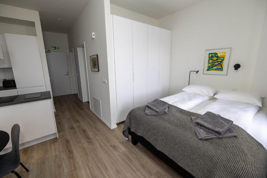 แต่ละอพาร์ตเมนต์ประกอบด้วยห้องนอนที่มีเตียงควีนไซส์ พร้อมชุดเครื่องนอน หมอน และโต๊ะข้างเตียง ห้องน้ำส่วนตัวมีฝักบัว ห้องสุขา ผ้าขนหนูสะอาด กระจก และของใช้ในห้องน้ำฟรี