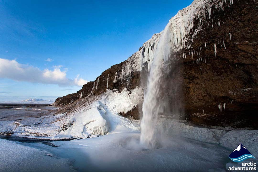 จุดแรกของทัวร์คือน้ำตกเซลยาแลนด์สฟอสส์ ซึ่งเป็นหนึ่งในน้ำตกที่มีชื่อเสียงที่สุดในประเทศ น้ำตกเซลยาแลนด์สฟอสส์มีความสูงประมาณ 60 เมตร ที่นี่ คุณจะได้สัมผัสประสบการณ์ที่ไม่เหมือนใครและน่าอัศจรรย์ เนื่องจากมีเส้นทางด้านหลังน้ำตก เส้นทางนี้หมายความว่าคุณสามารถเดินอ้อมไปด้านหลังน้ำตกและมองออกไปจากด้านหลังม่านน้ำได้